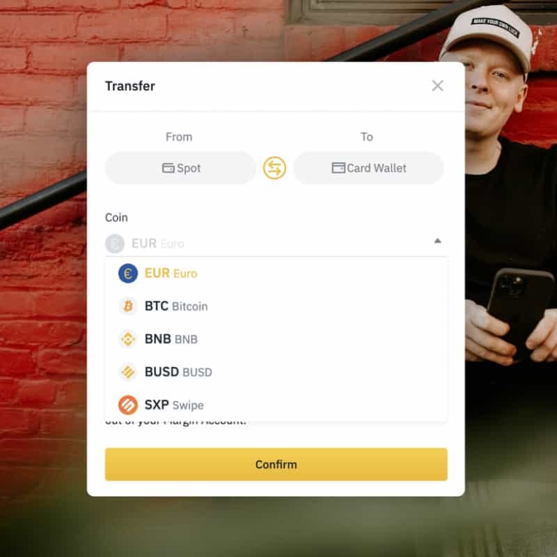 Votre compte Binance inclut un portefeuille Spot et un portefeuille Carte. Votre portefeuille Spot fonctionne comme n'importe quel compte courant. Vous pouvez transférer de l'argent vers votre portefeuille carte de manière instantanée et dans la limite journalière indiquée dans votre compte. Les devises supportées sont BNB, BUSD, BTC, SXP, ETH, EUR, ADA, DOT, FIL, XVS et VAI. La carte peut être également alimentée par une recharge automatique quand le solde atteint 10 à 250€. Si le montant disponible sur le portefeuille Spot est insuffisant alors la recharge sera partielle.