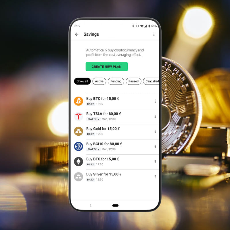 - Fonction épargne : achat programmé et récurrent de cryptomonnaies ou de matières premières par le biais d’un prélèvement SEPA ou carte bancaire. L'investissement régulier permet de juguler la volatilité des cryptomonnaies