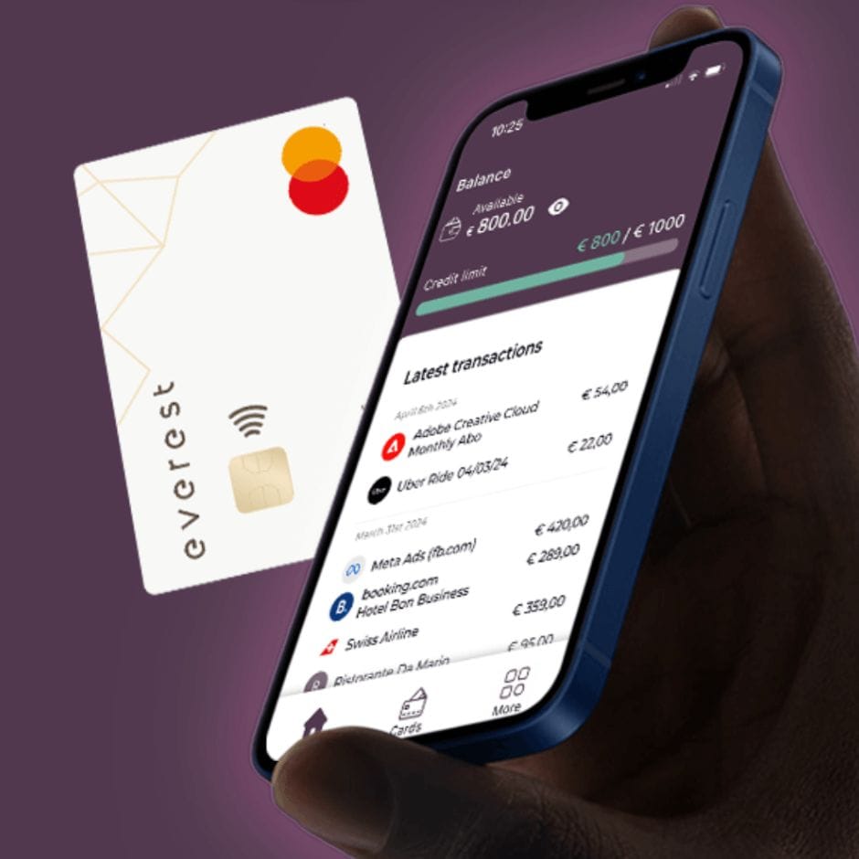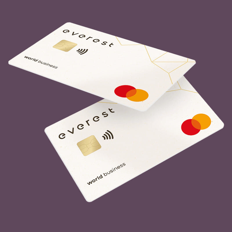 Everest est la néobanque qui offre les meilleures cartes corporate. Everest permet aux startups et aux TPE d'émettre de vraies cartes de crédit très haut de gamme (Mastercard Business World) pour chacun de leurs salariés. Elles sont idéales pour voyager, mais aussi pour acheter du matériel coûteux qu'il est bon de protéger avec une assurance supplémentaire.