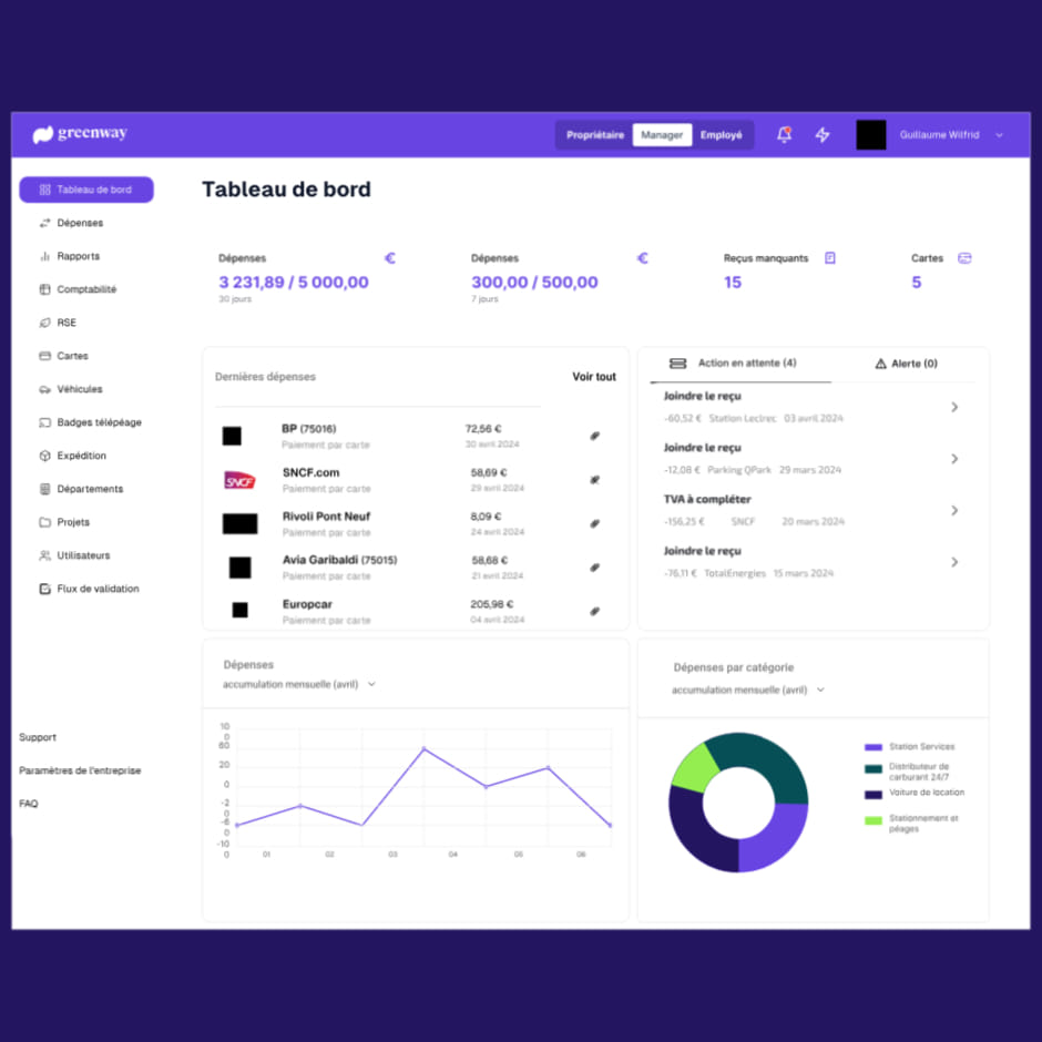 Greenway (greenway.care) est une fintech française basée à Paris qui propose une carte professionnelle “all-in-one” pour centraliser les dépenses d’entreprise, surtout autour de la mobilité et des achats professionnels. Elle combine carte de paiement, gestion de flotte, badges de télépéage, recharge électrique, suivi des dépenses et reporting RSE, avec un mécanisme d’impact où 1% des transactions finance des projets sociaux et environnementaux via sa fondation.greenway.