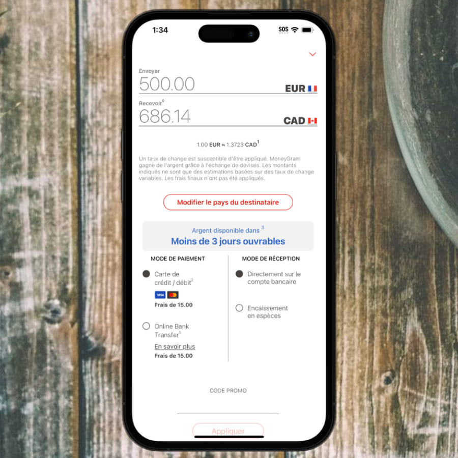 MoneyGram est une application de transfert d'argent utilisée par 150 millions de personnes dans le monde. Elle permet d’envoyer de l'argent entre deux banques rapidement, au taux de change réel et à peu de frais.