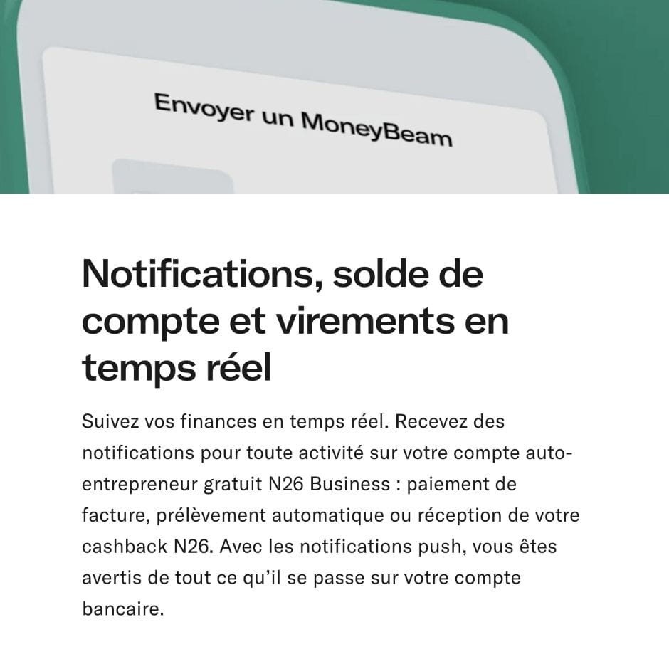 - Cashback entre 0,1% et 0,5% sur tous les paiements effectués avec la carte N26 Business