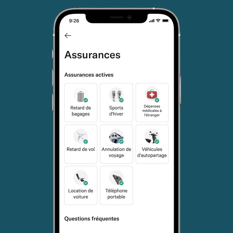 L'offre N26 You (9,90€/mois) est conçue pour les voyageurs, avec des retraits gratuits en devises étrangères et un ensemble complet d'assurances voyage (urgence médicale, annulation de voyage, bagages).