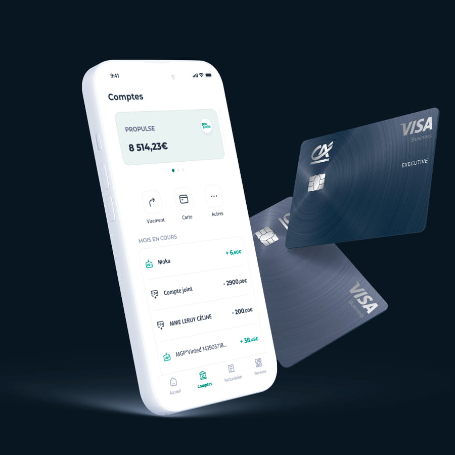- 1 carte bancaire professionnelle Visa Business internationale à débit immédiat