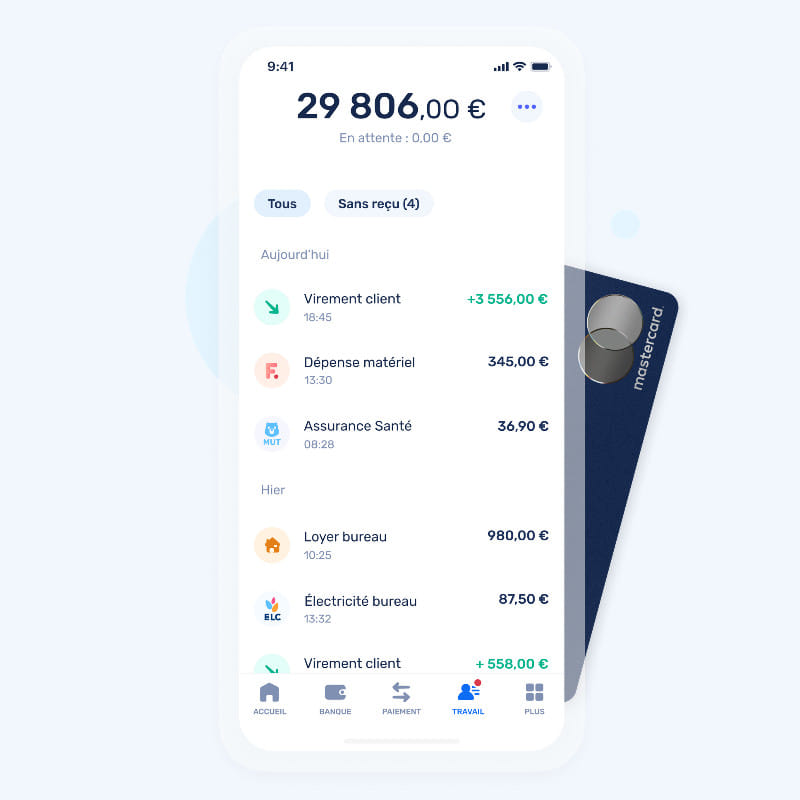 - 1 carte bancaire professionnelle Mastercard Standard ou Business World (voir les offres)