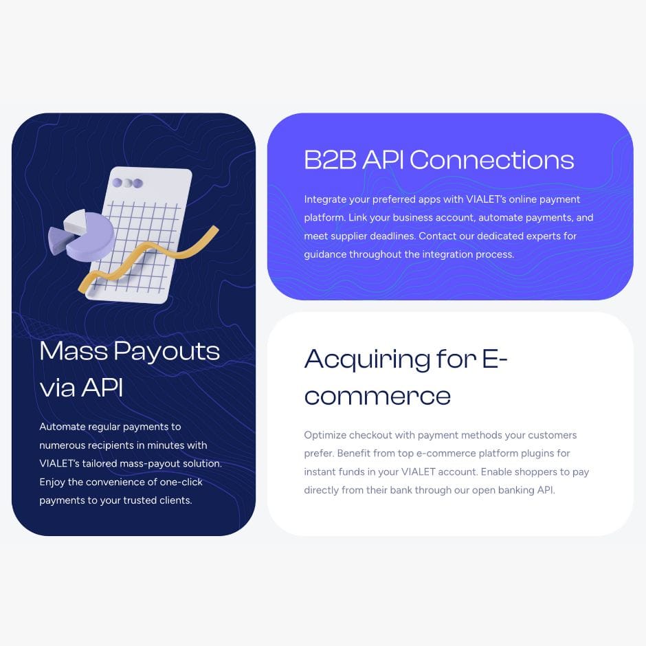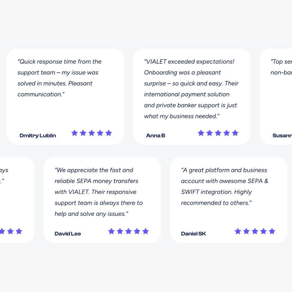 VIALET est une néo-banque qui permet d'effectuer des virements transfrontaliers sans frais partout en Europe (Zone SEPA). Il est possible de créer un compte VIALET entièrement fonctionnel en moins de 3 minutes. Cela permet d'obtenir un compte bancaire avec un IBAN ainsi qu'une carte bancaire Mastercard sans contact.